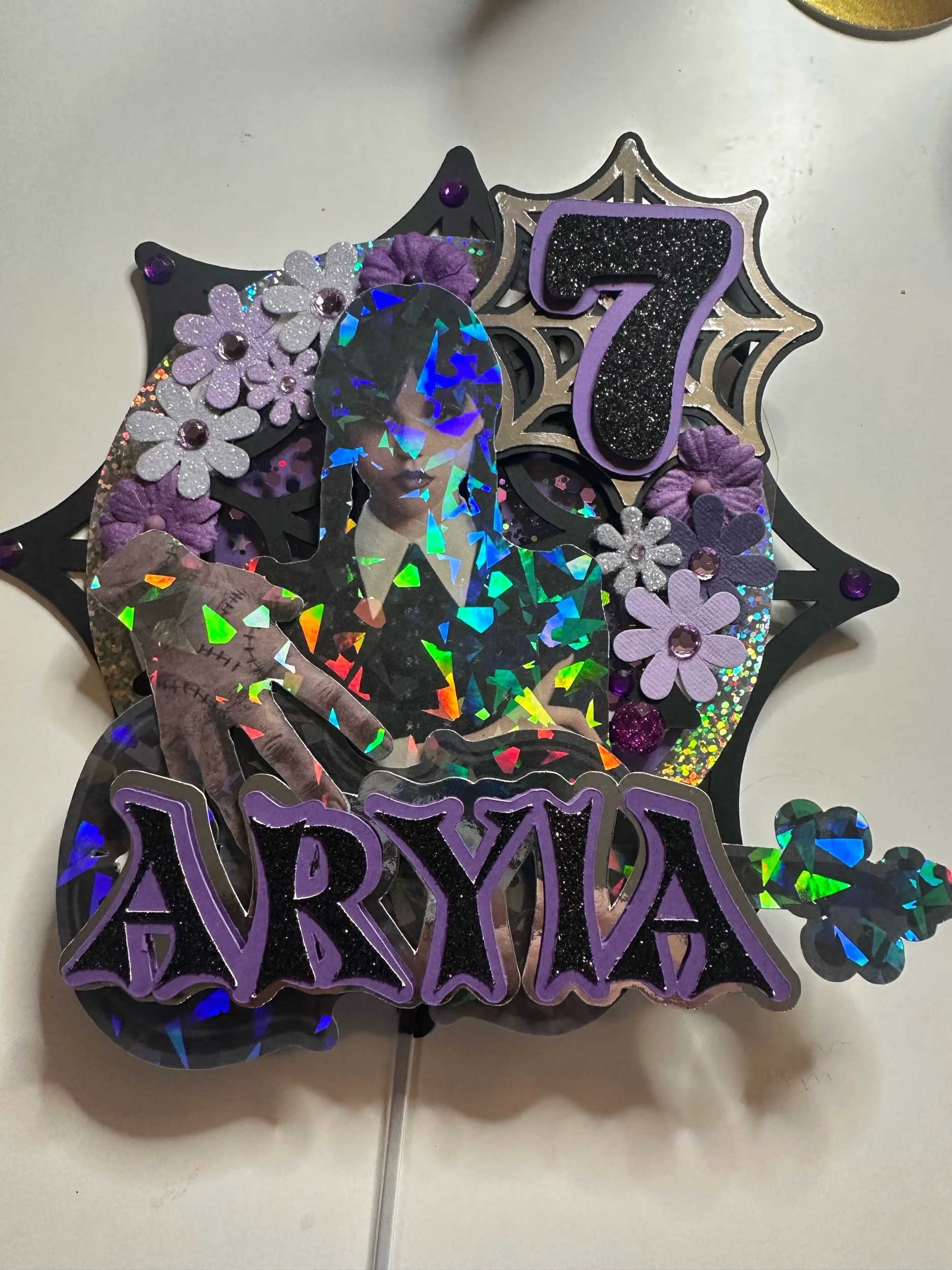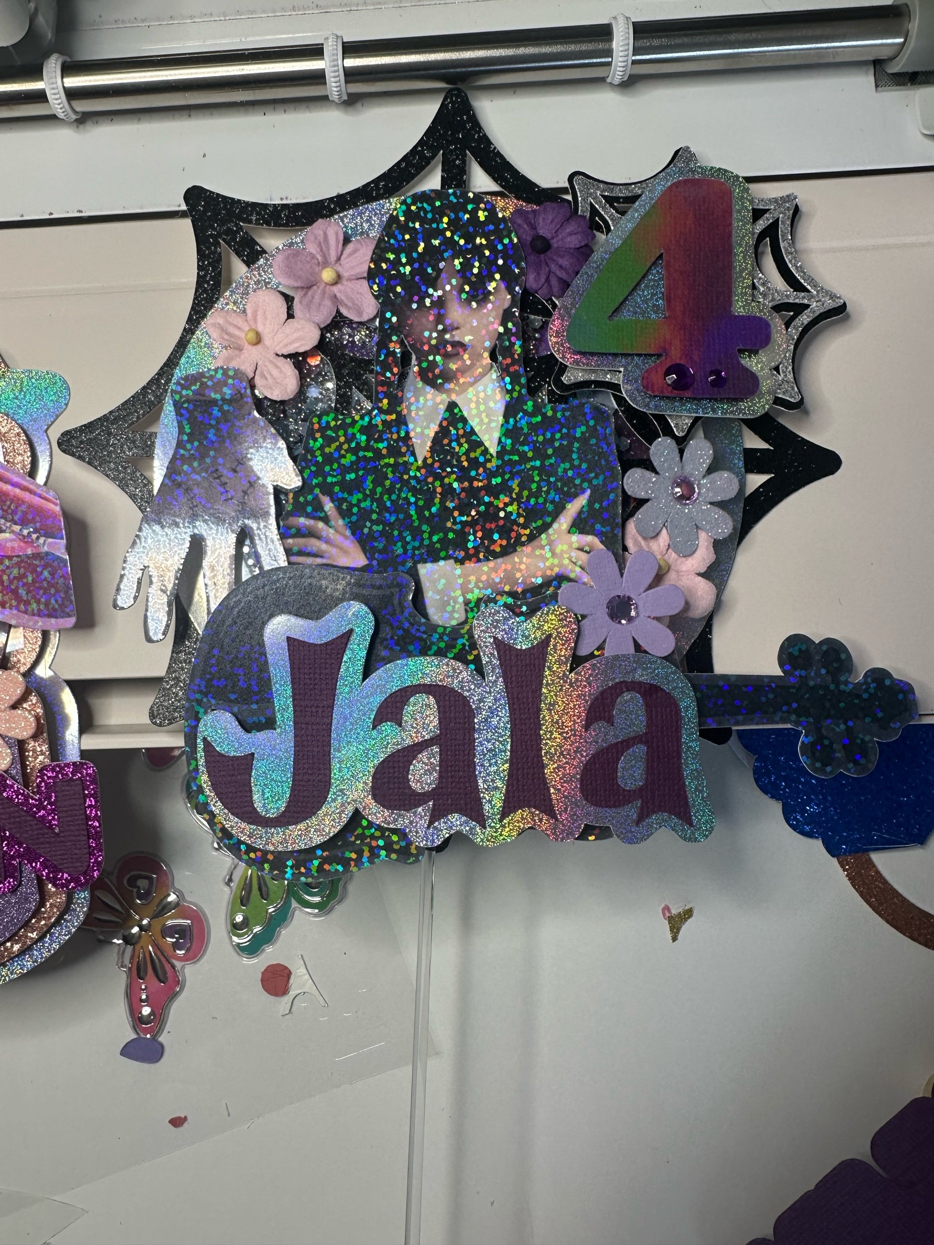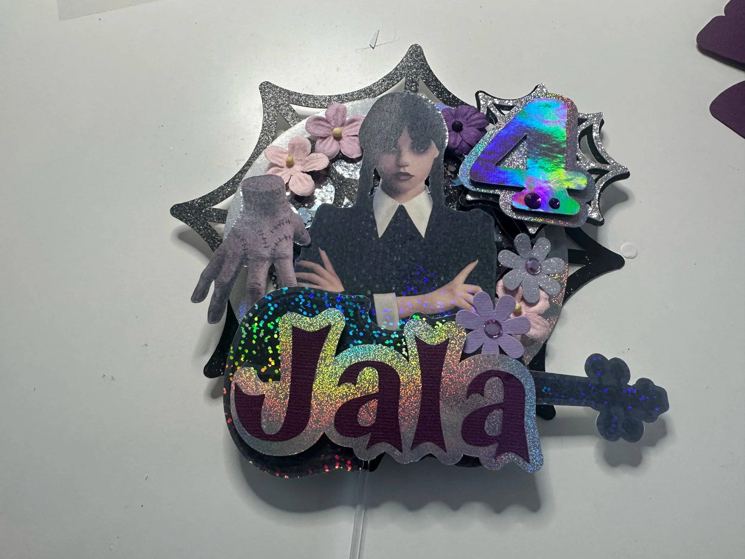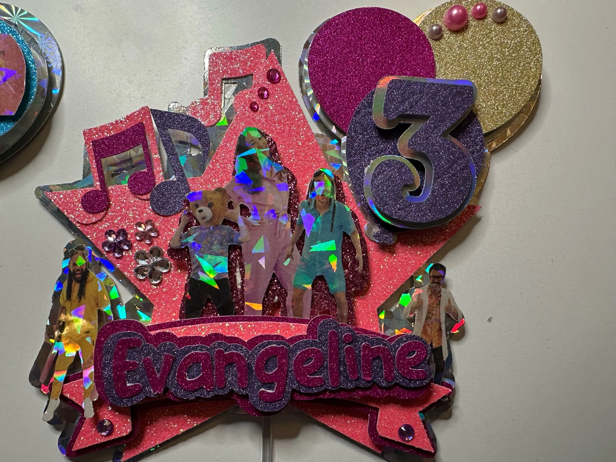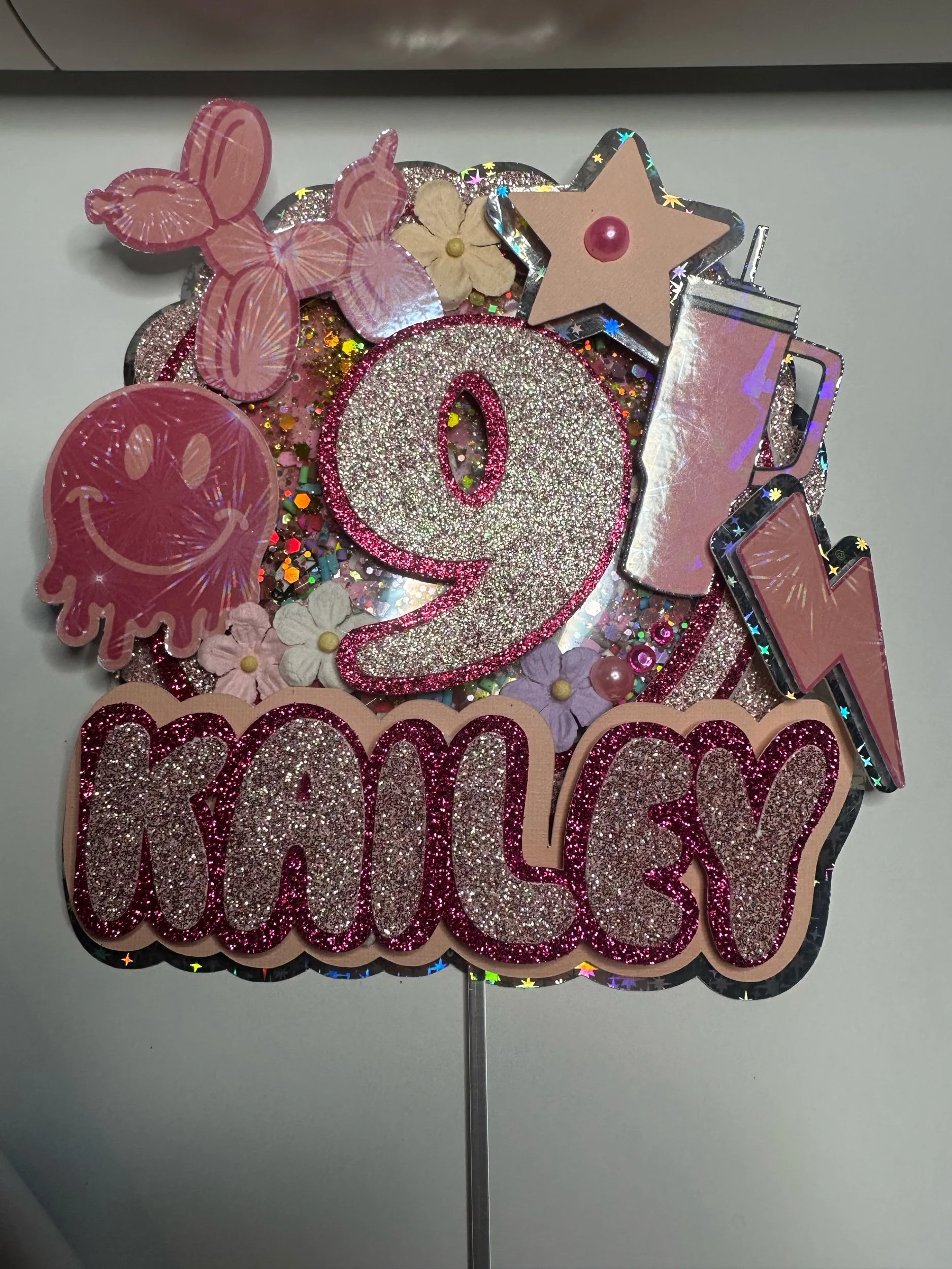 Level up your celebration with this K-Pop Demon Hunter–inspired shaker cake topper! Featuring your favorite characters in a bold, dynamic design, this topper adds sparkle, movement, and major personality to any cake.