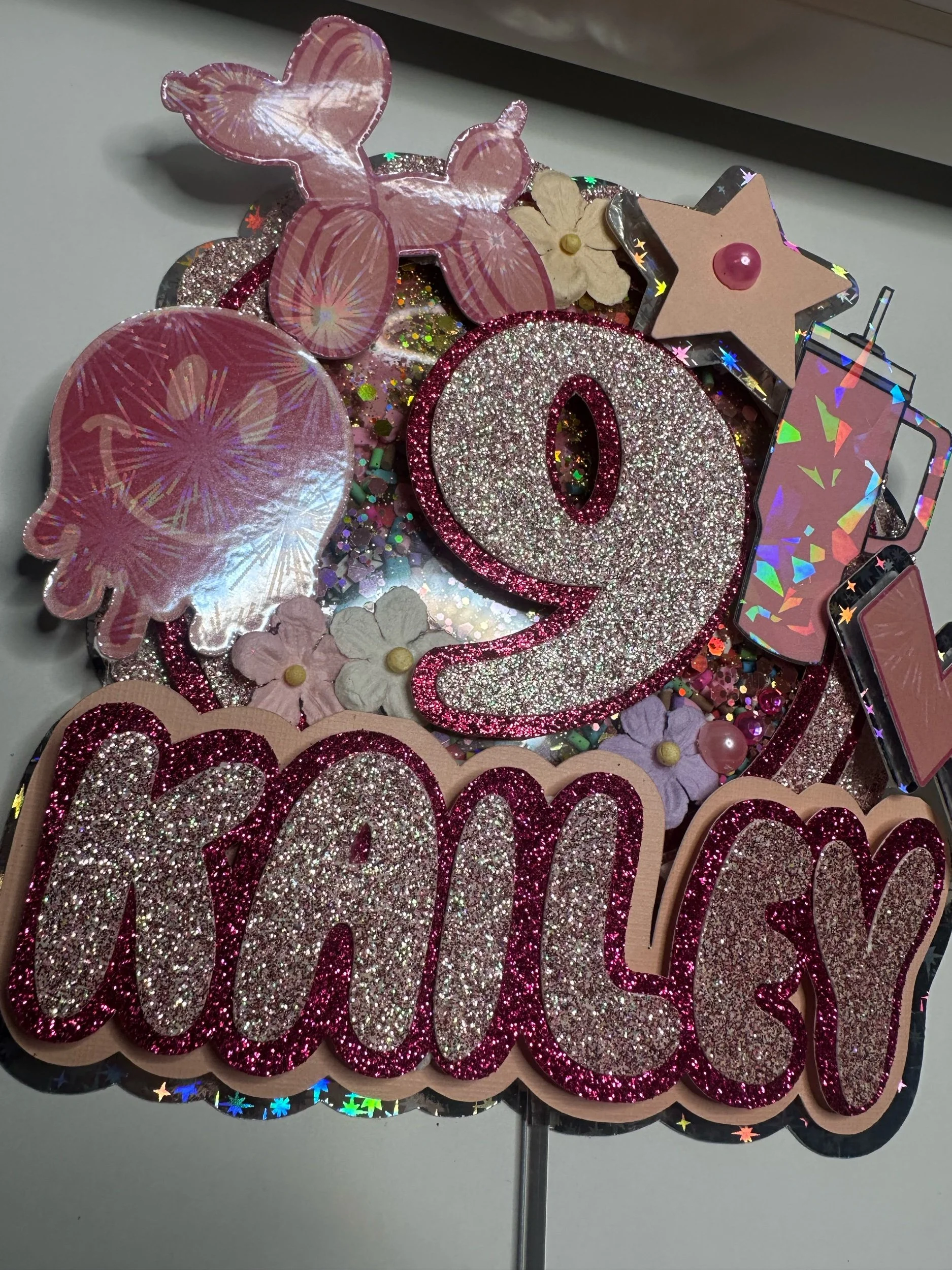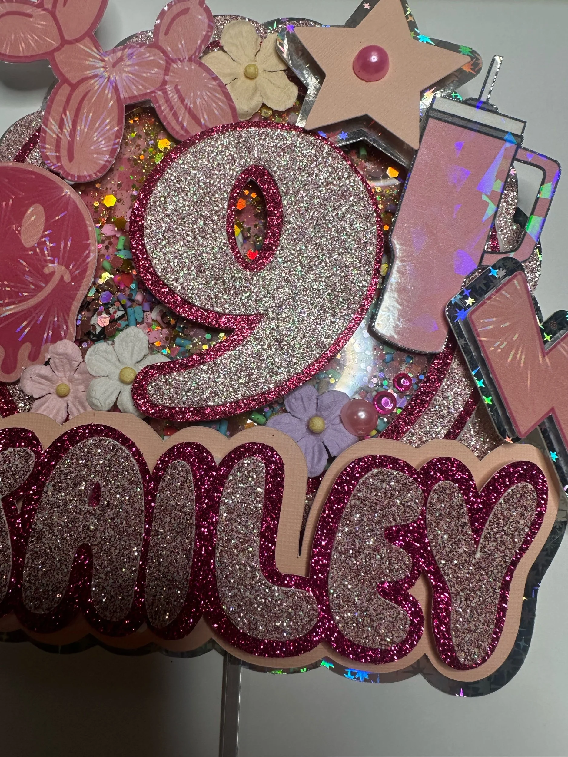 Crafted with premium cardstock and clear acetate, this topper includes interactive shaker elements for a fun, eye-catching effect that guests will love.